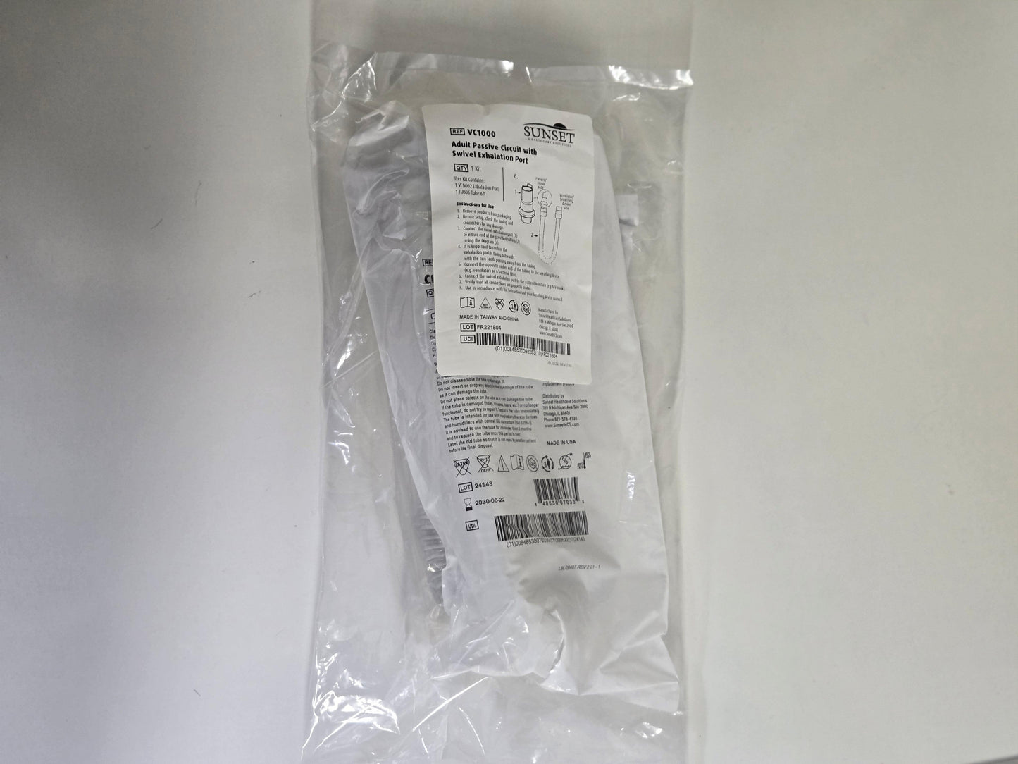 NEW Sunset Healthcare Solutions 22mm Adult Passive Circuit TUB06 with Swivel Exhalation Port VEN002 without Water Trap MPN VC1000