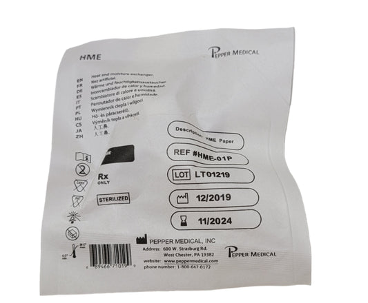 Pepper Medical HME Heat and Moisture Exchanger with Paper Filter 50/Case HME-01P - New