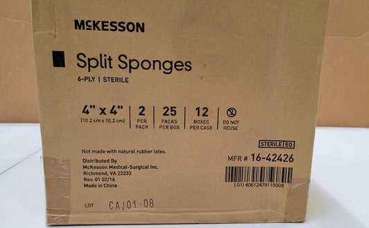 McKesson Split Sponges 6-Ply Sterile 16-42426 12Box/Case - New