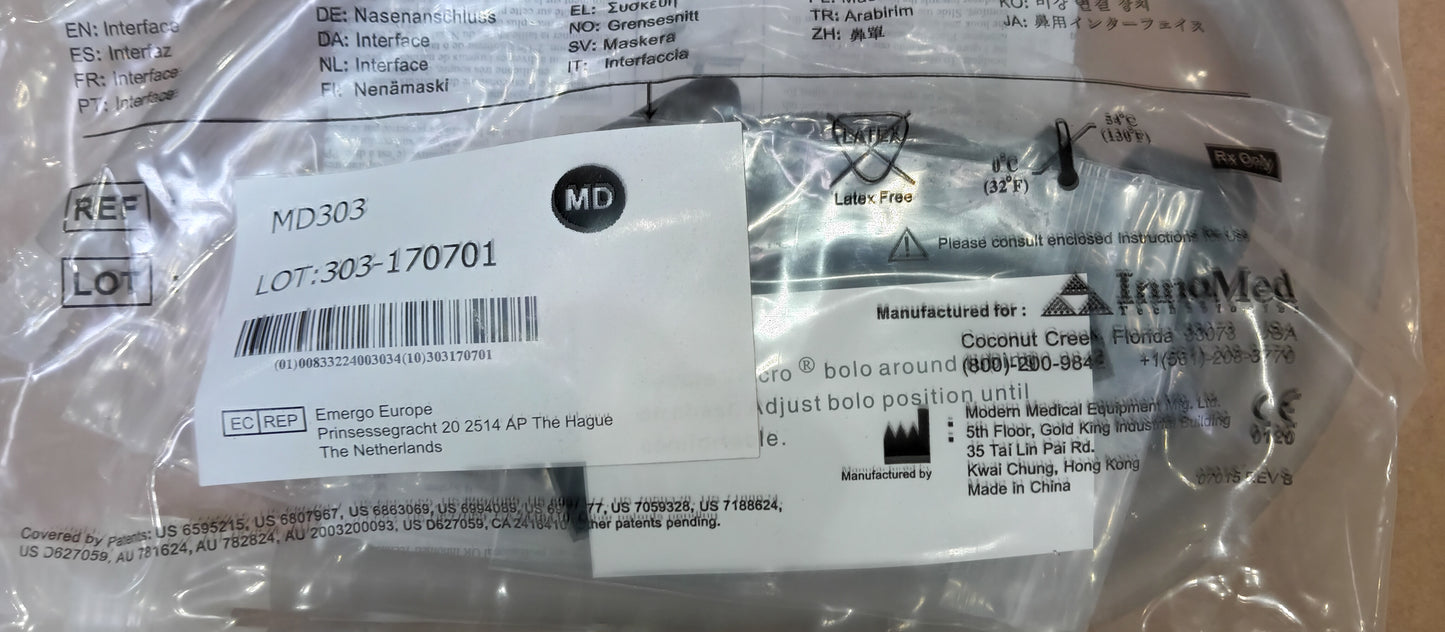 Innomed Nasal Aire II Medium CPAP Mask & Headgear MD303 - New