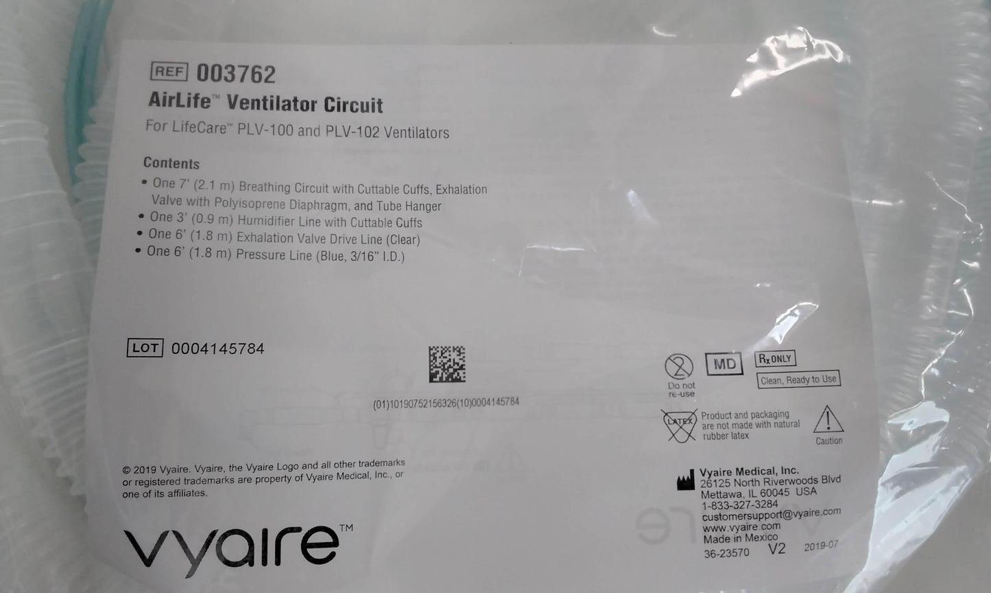 - NEW Each Vyaire Airlife Ventilator Patient Circuit Ref PN 003762