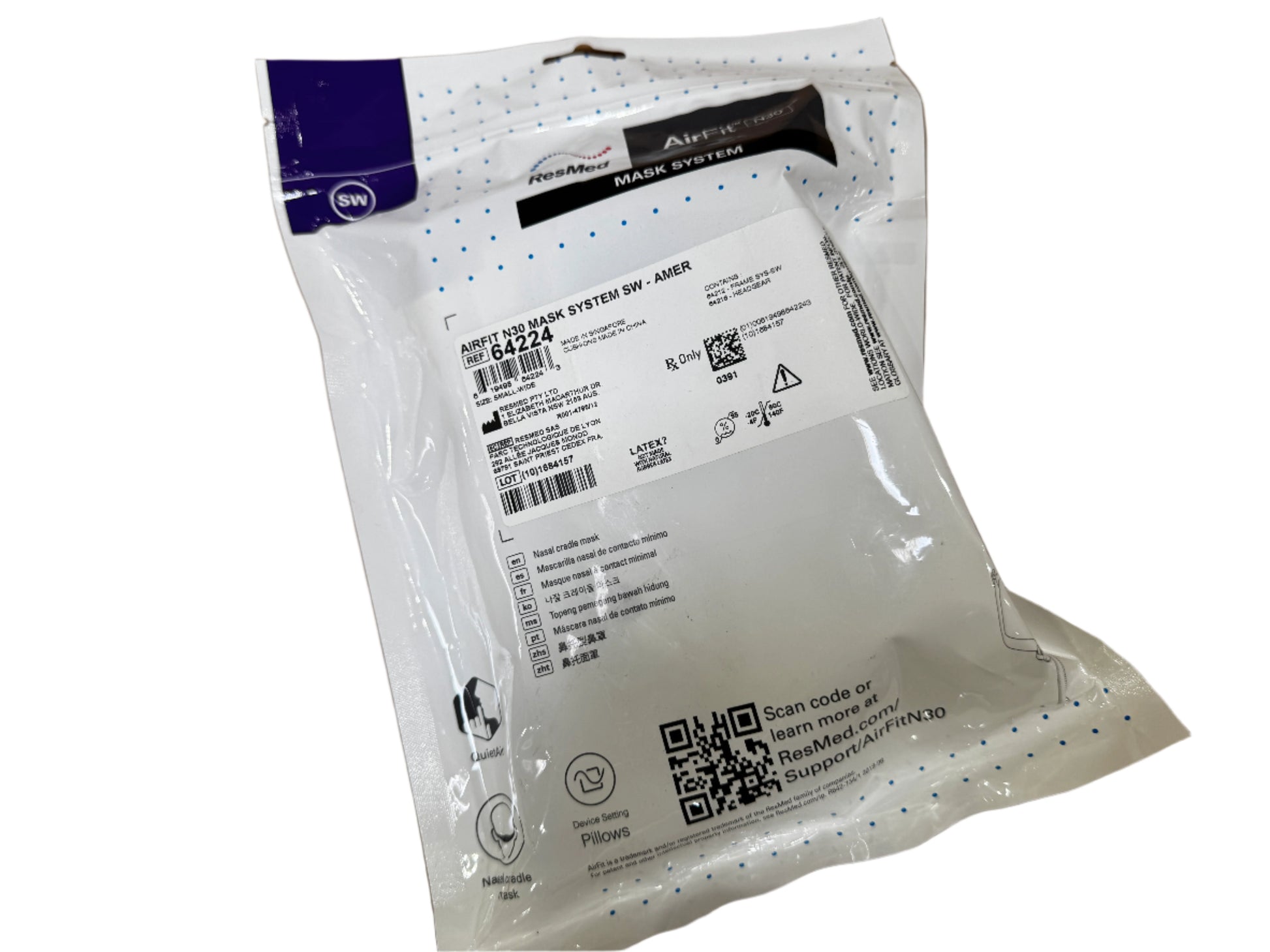 ResMed AirFit N30 CPAP Nasal Mask System with Headgear SW 64224 - New