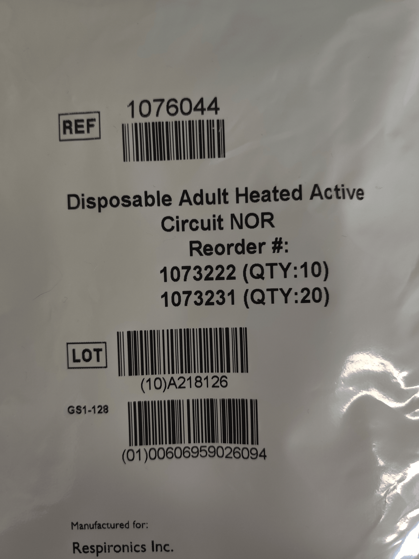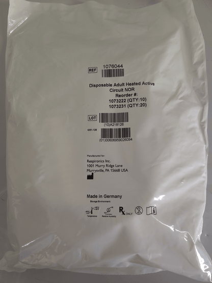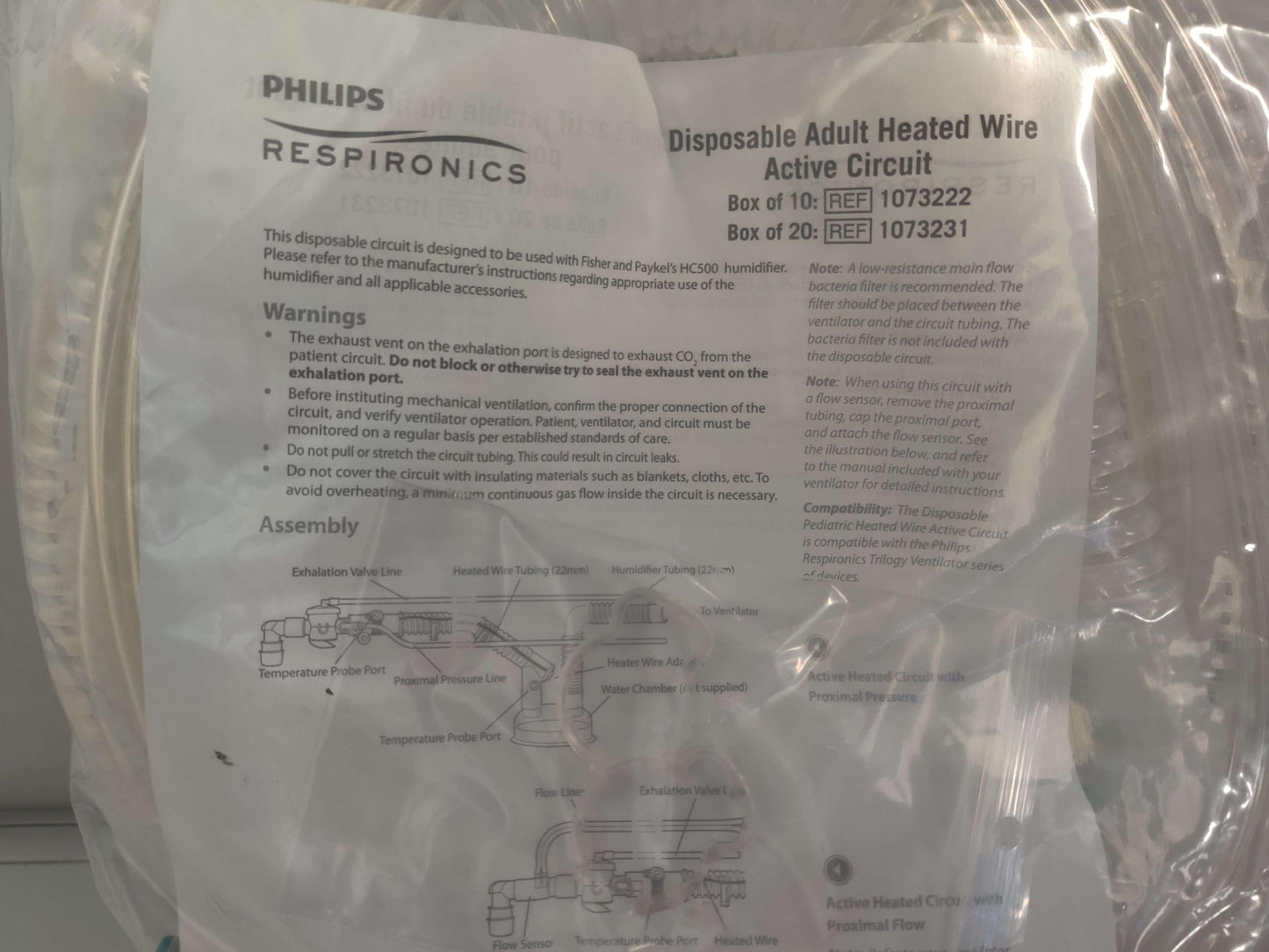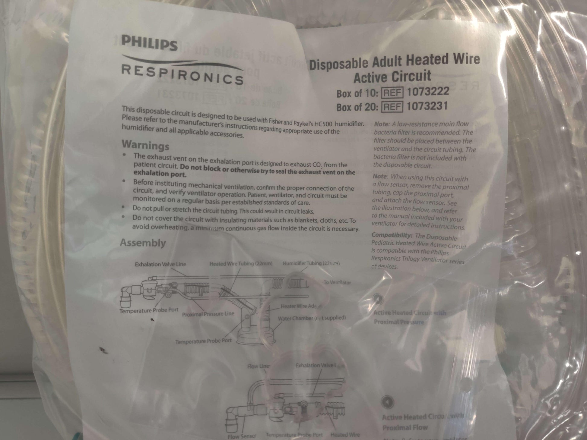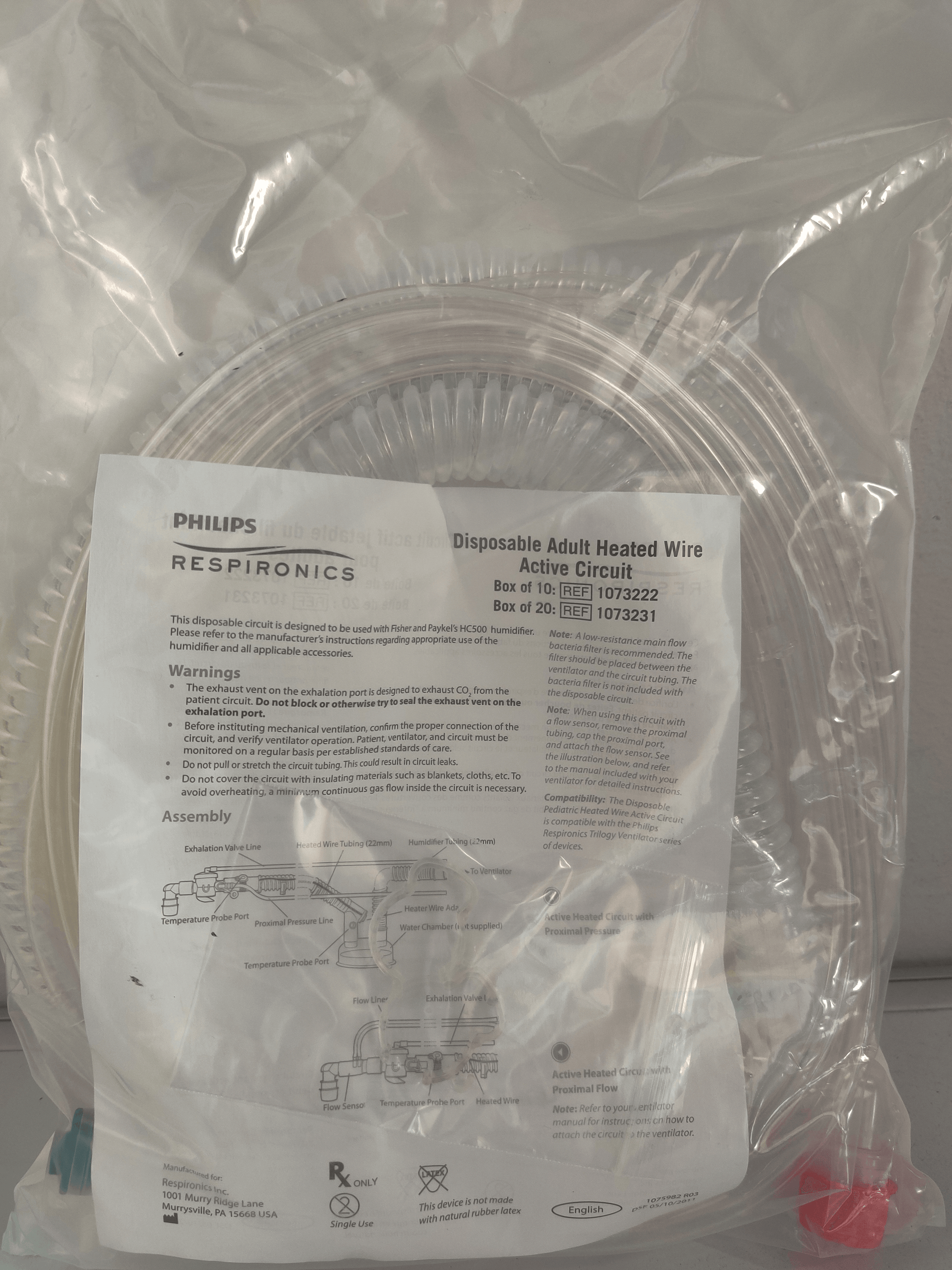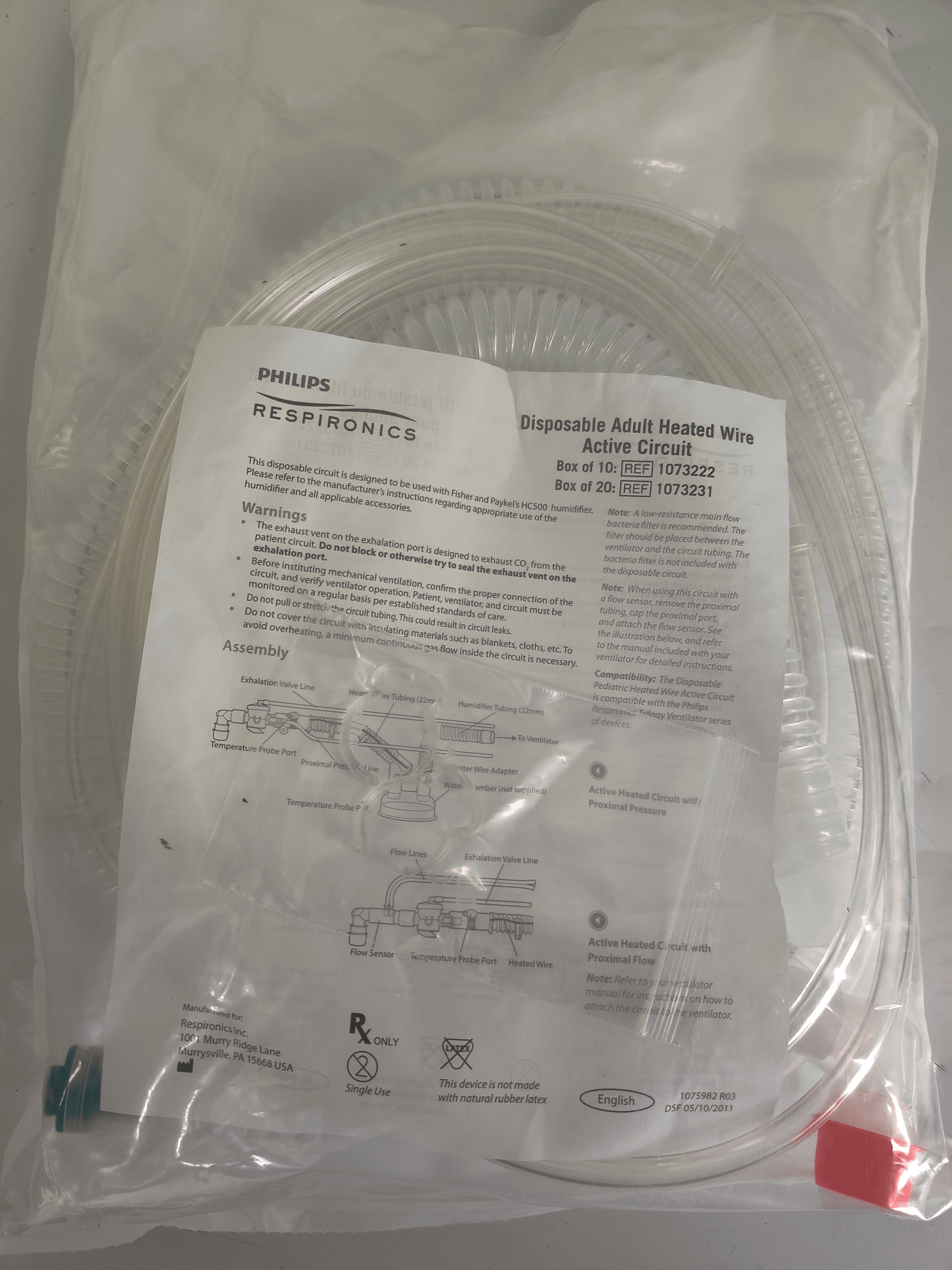 - NEW Philips Respironics Disposable Adult Heated Active Patient Circuit Ref PN 1076044 Each, Other Ref # 1073222 10PK , 1073231 20PK