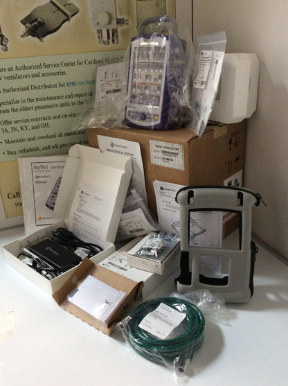 The ReVel Respiratory Ventilator (#19260-001) is part of the Vyaire Palm-Top Ventilator (PTV) Series. The ReVel Ventilator is extremely handy and transportable, making it the ideal ventilator for patients who are flying or simply on the go.