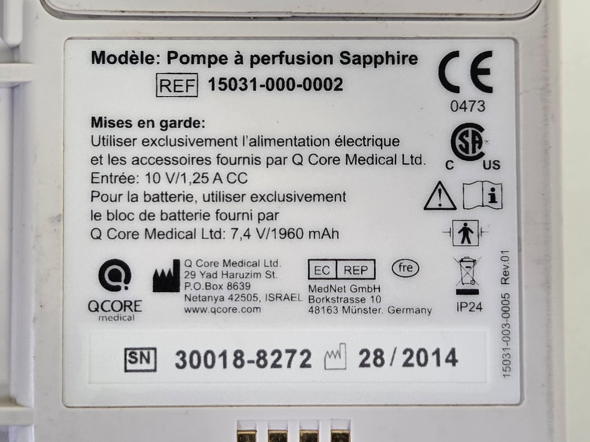 Q Core Medical Sapphire Multi-Therapy Infusion Pump French Version 15031-000-0002 -Used