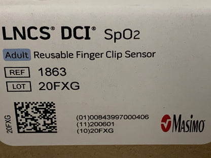 - New Breas SpO2 Masimo 1863 Reusable Adult Finger Clip Sensor Ref PN 006589 , Draeger PN NA20051