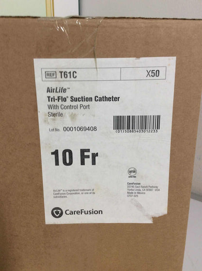 Case of 50 NEW CareFusion AirlLfe Tri-Flo Suction Catheters 10 Fr T61C