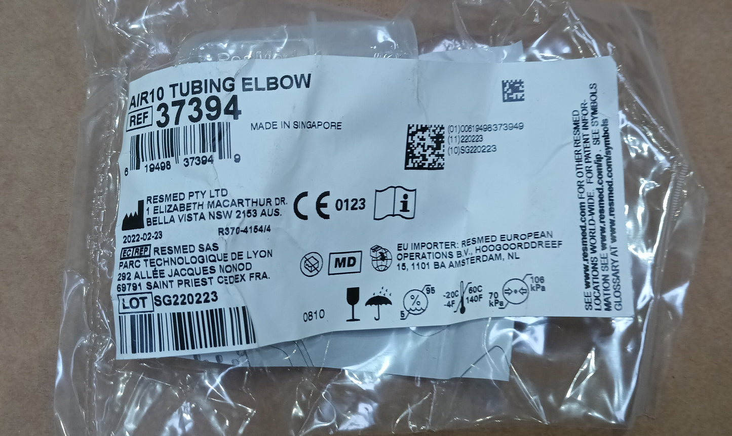 ResMed Air10 Tubing Elbow for Non-Heated Tubing on various CPAP and BiPap Machines MPN 37394 - New