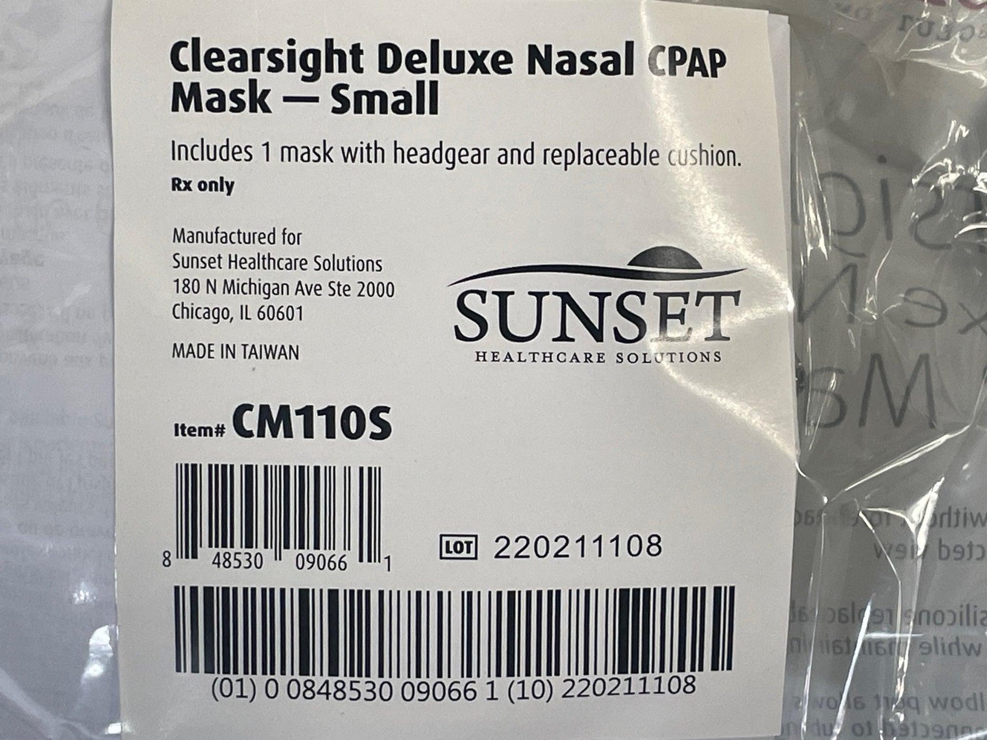 - NEW Small Sunset Healthcare Clearsight Deluxe CPAP Nasal Mask with Headgear and Removable Cushion Ref PN CM110S