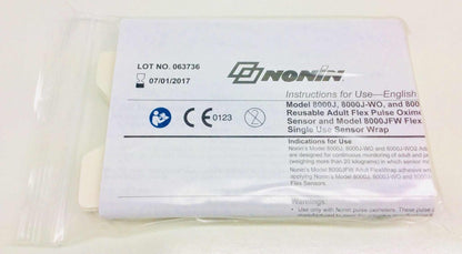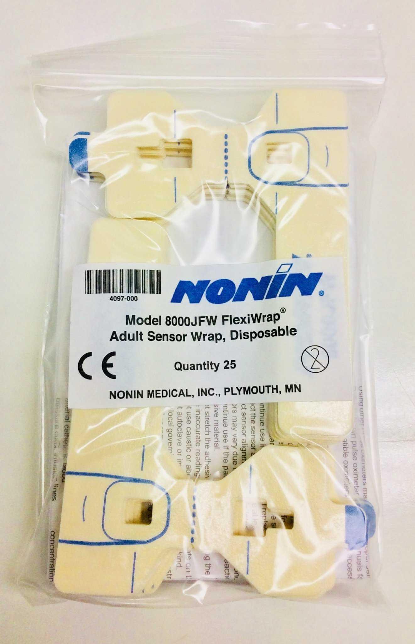 - 25- NEW Nonin Pack of Disposable Adult Sensor FlexiWraps 8000JFW (package count of 25) Single Use Sensor Wraps