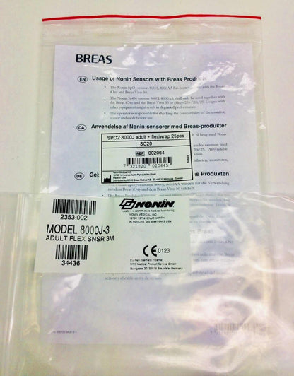 NEW Breas Nonin SPO2 Adult Flex Sensor with Wraps 002064 Warranty FREE Shipping