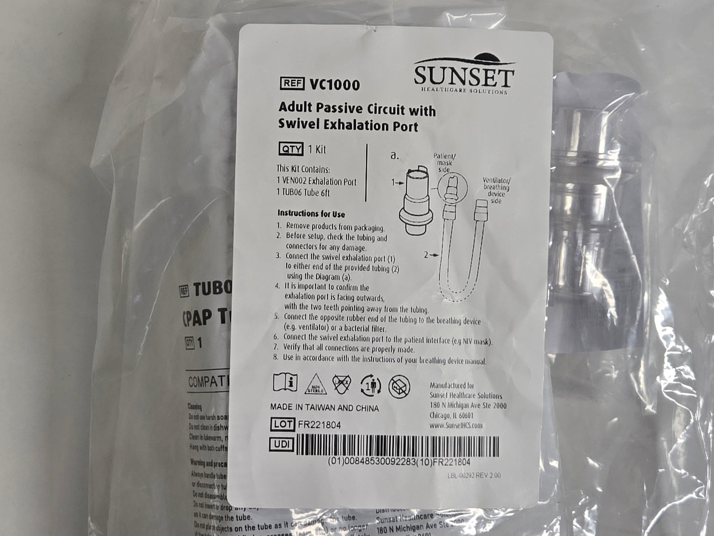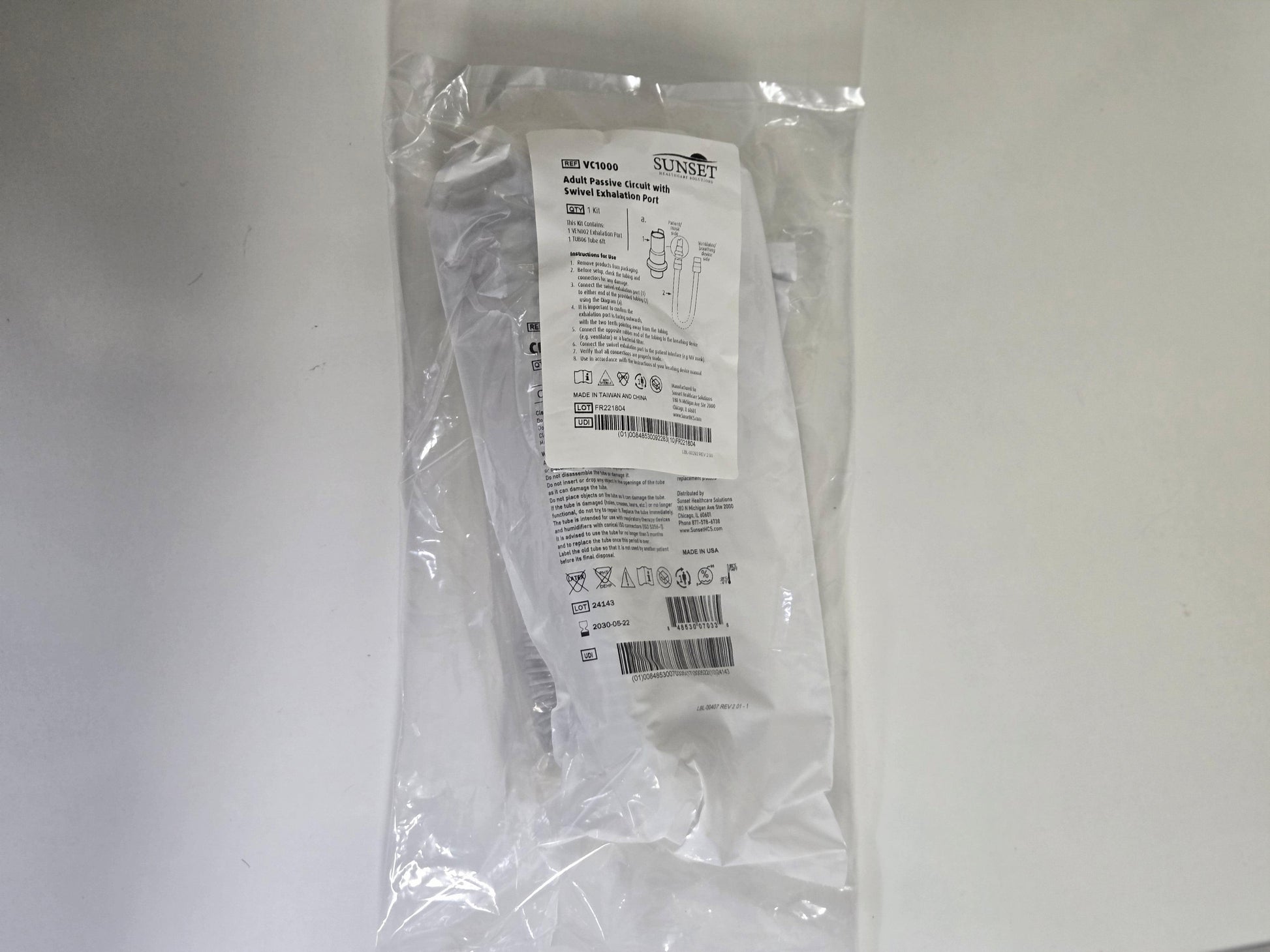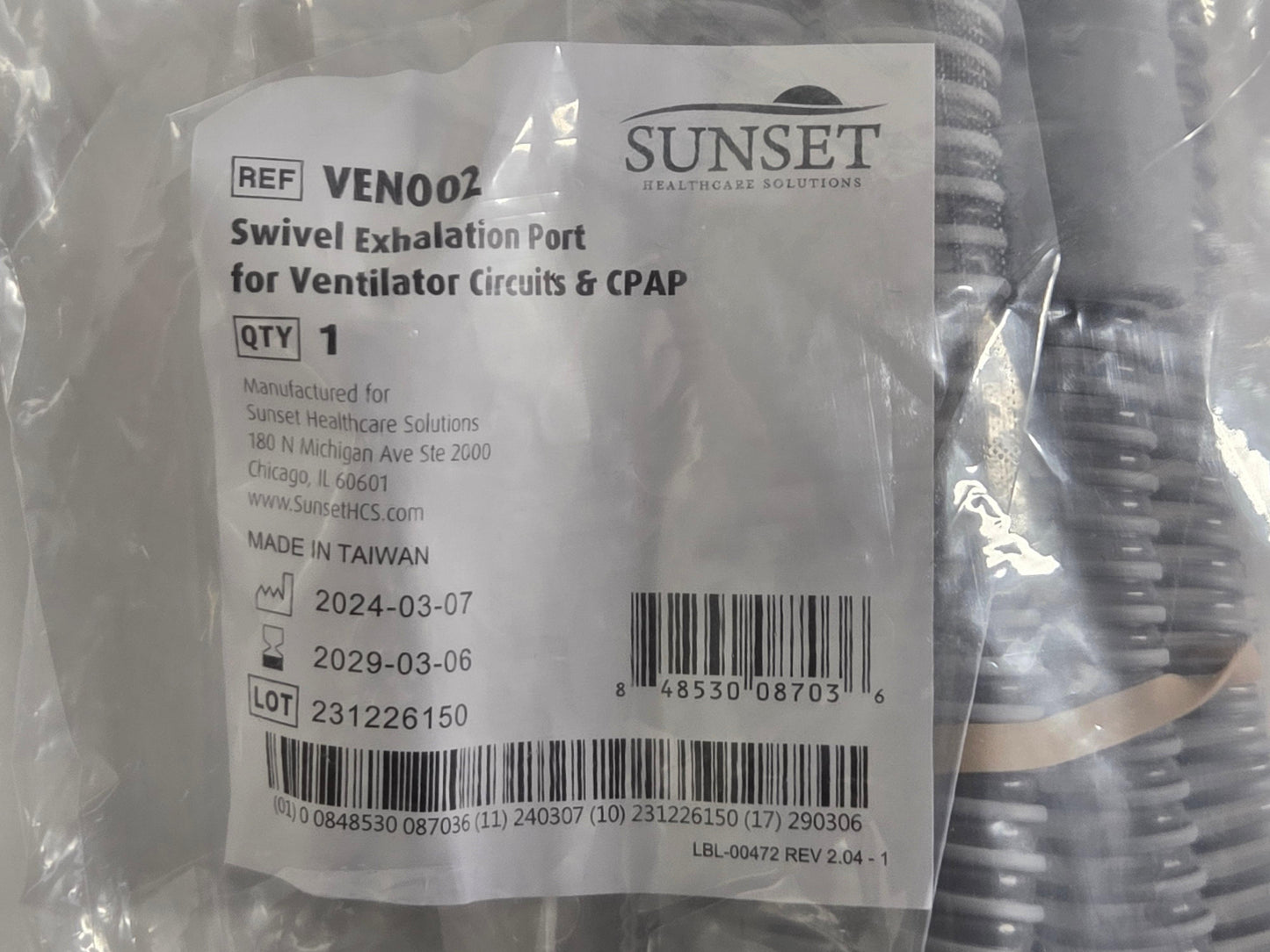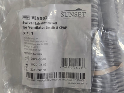 NEW Sunset Healthcare Solutions 22mm Adult Passive Circuit TUB06 with Swivel Exhalation Port VEN002 without Water Trap MPN VC1000