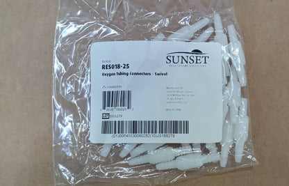 NEW Sunset Healthcare Oxygen Tubing Swivel Connector Pack of 25 MPN RES018-25