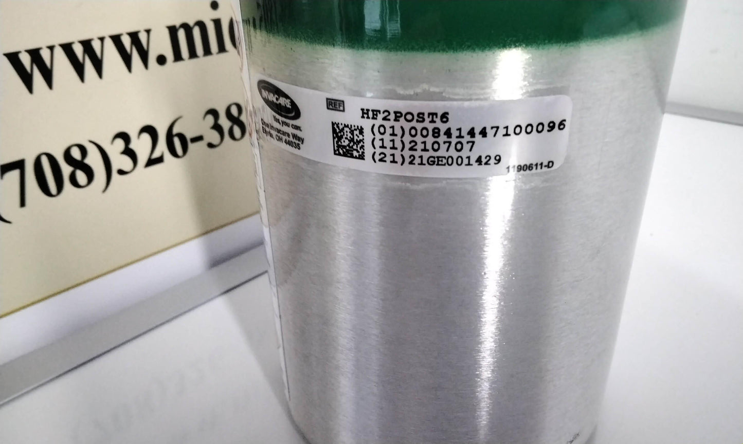 Invacare HomeFill Post Valve ML6 Cylinder HF2POST6 170L, 12" H x 4-3/8" dia., Oxygen Duration at 2 LPM Flow: 75 min.