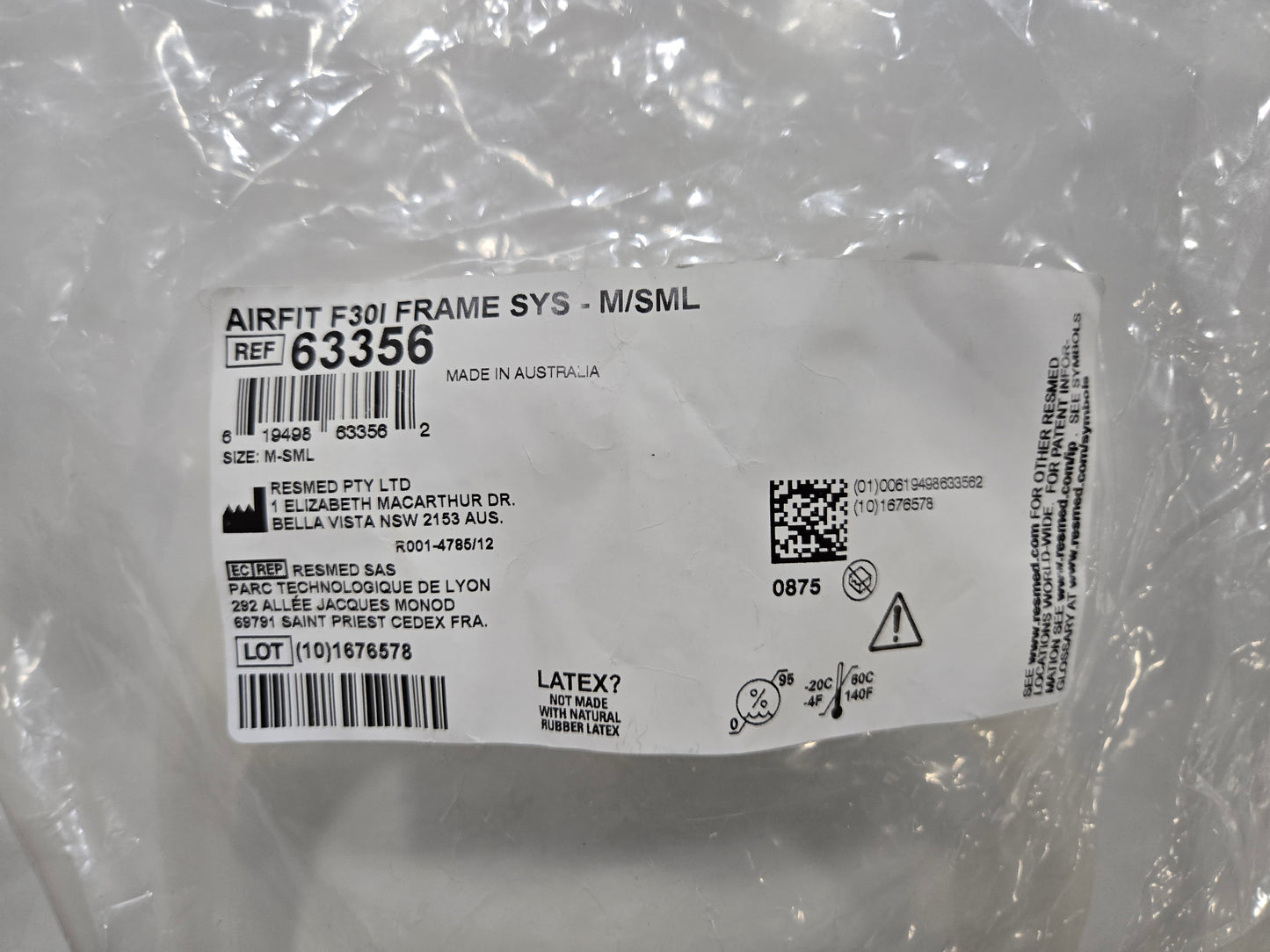 • NEW ResMed AirFit F30i Frame System - System includes frame, cushion and elbow. Headgear not included.