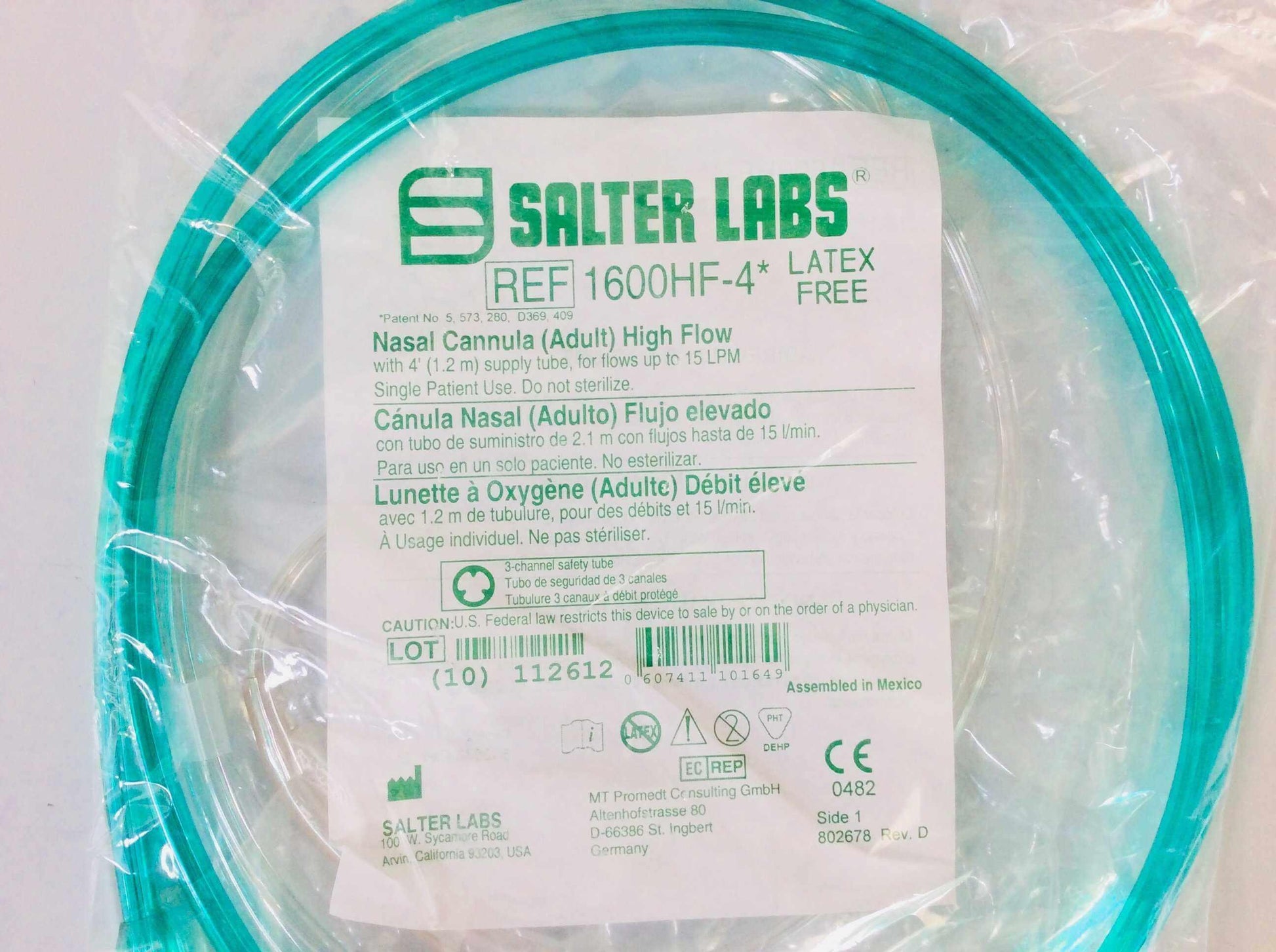 NEW Salter Labs Adult High Flow Nasal Cannula 1600HF-4