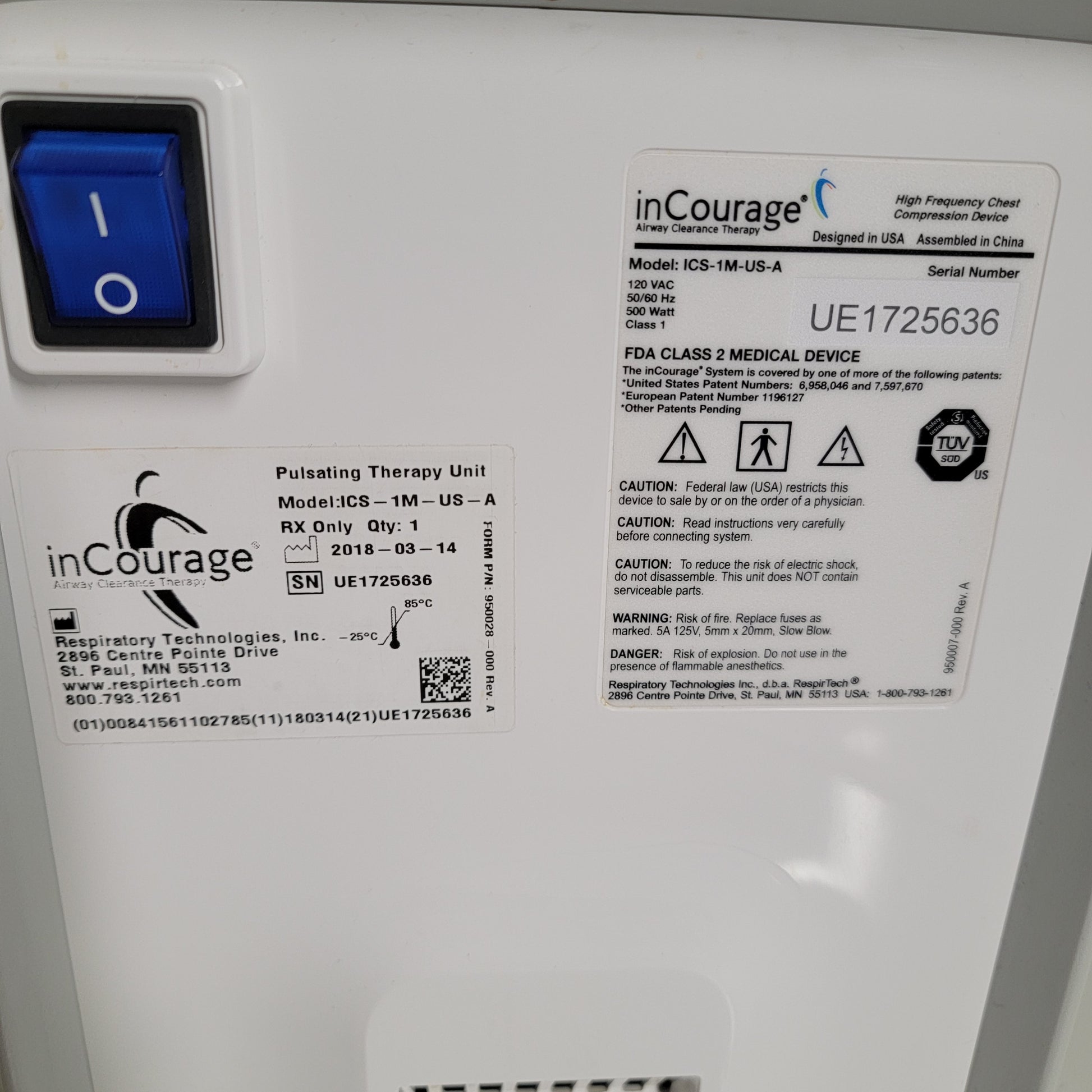 - Refurbished Philips Respirtech InCourage High Frequency Chest Wall Oscillation Device MPN ICS-1M-US-A ( SN UE1725636 , CH 127 , DOM 2018-03-14 )