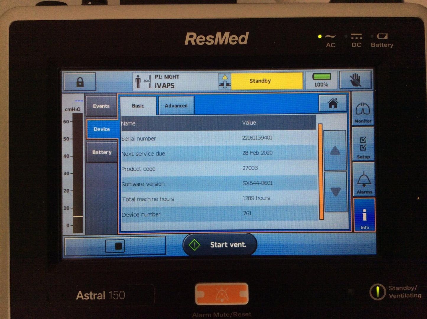 REFURBISHED ResMed Astral 150 Ventilator 27003