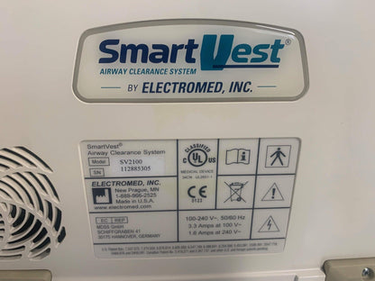 - For Parts or Repair Lot of 2 Electromed Inc. SmartVest HFCWO Airway Clearance Device Ref PN SV2100 (Sn: 102707810 , 112885305)